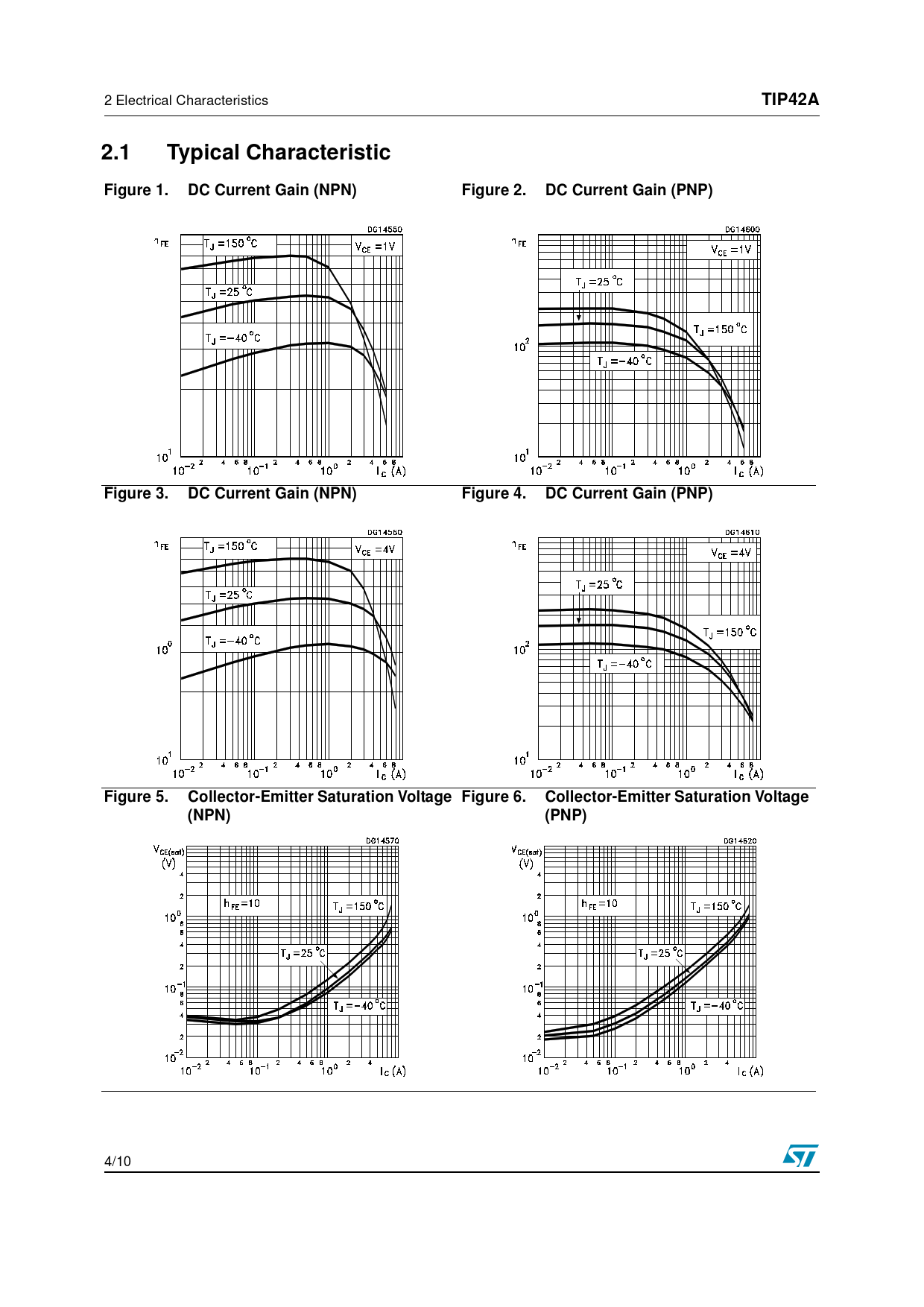 TIP42A. 2.1 Typical. Characteristic. Figure 1. DC Current Gain (NPN). Figure 2. DC Current Gain (PNP). Figure 3. Figure 4. Figure 5