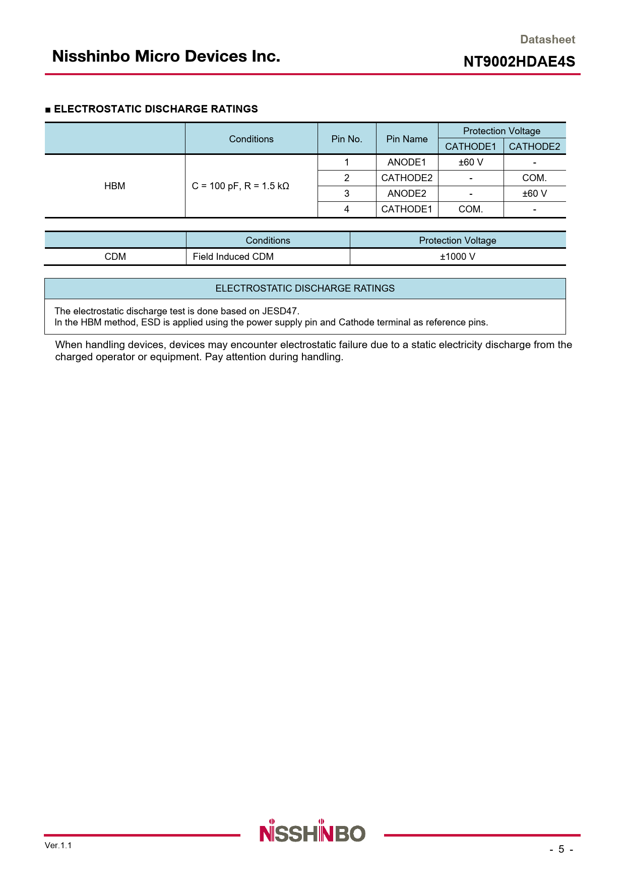 Seiten / Seite15 / 5 — Datasheet. NT9002HDAE4S. ■ ELECTROSTATIC DISCHARGE RATINGS