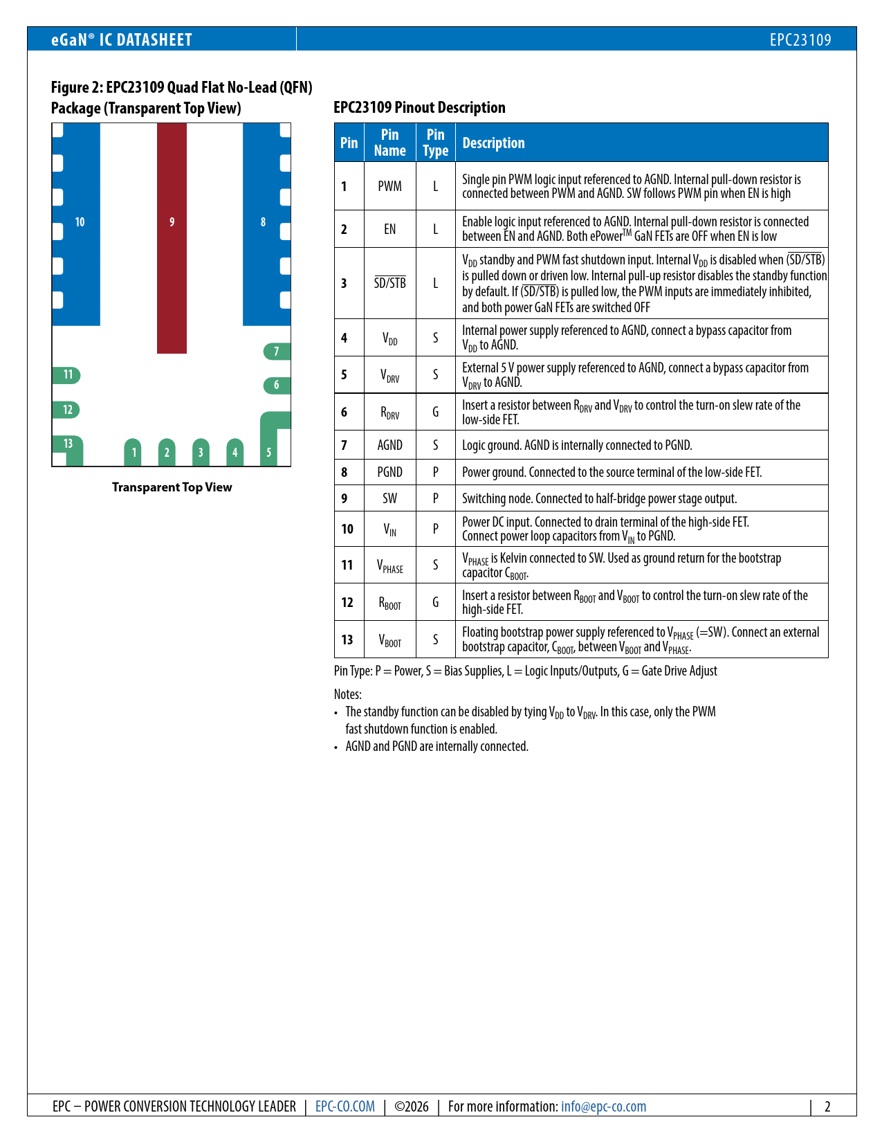 eGaN® IC DATASHEET. Figure 2: EPC23109 Quad Flat No-Lead (QFN). Package (Transparent Top View). EPC23109 Pinout Description
