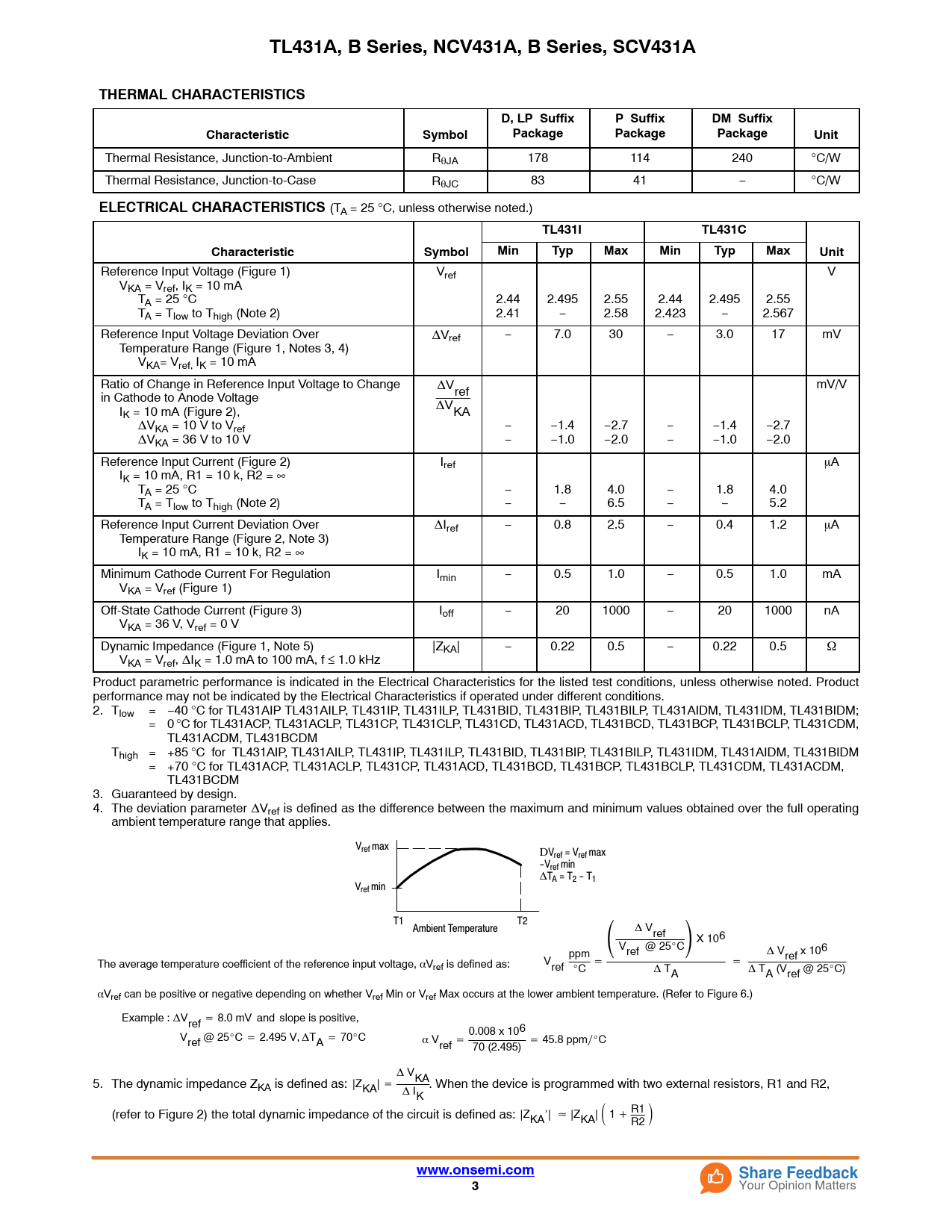 TL431A, B Series, NCV431A, B Series, SCV431A. THERMAL CHARACTERISTICS. D, LP Suffix. P Suffix. DM Suffix. Characteristic. Symbol