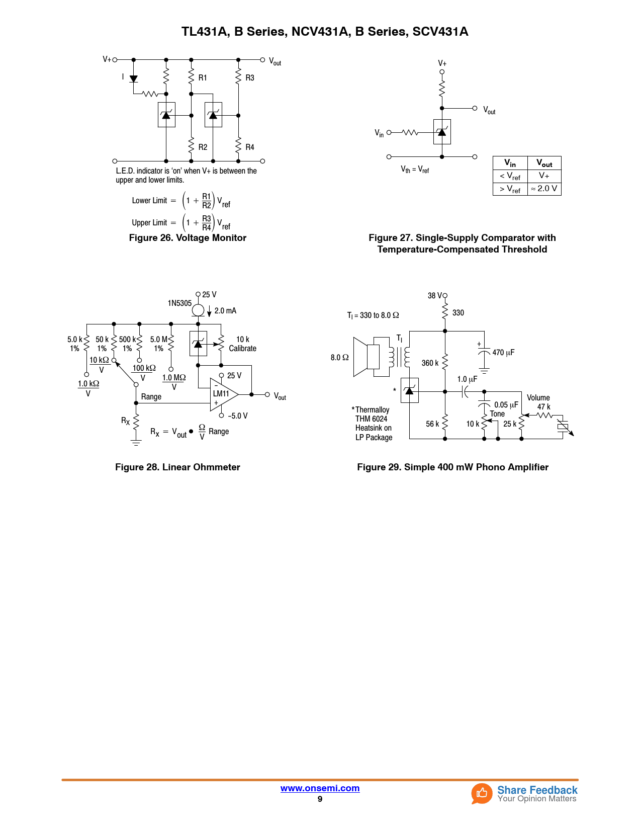 Figure 28. Linear Ohmmeter Figure 29. Simple 400 mW Phono Amplifier www.onsemi.com Share Feedback 9