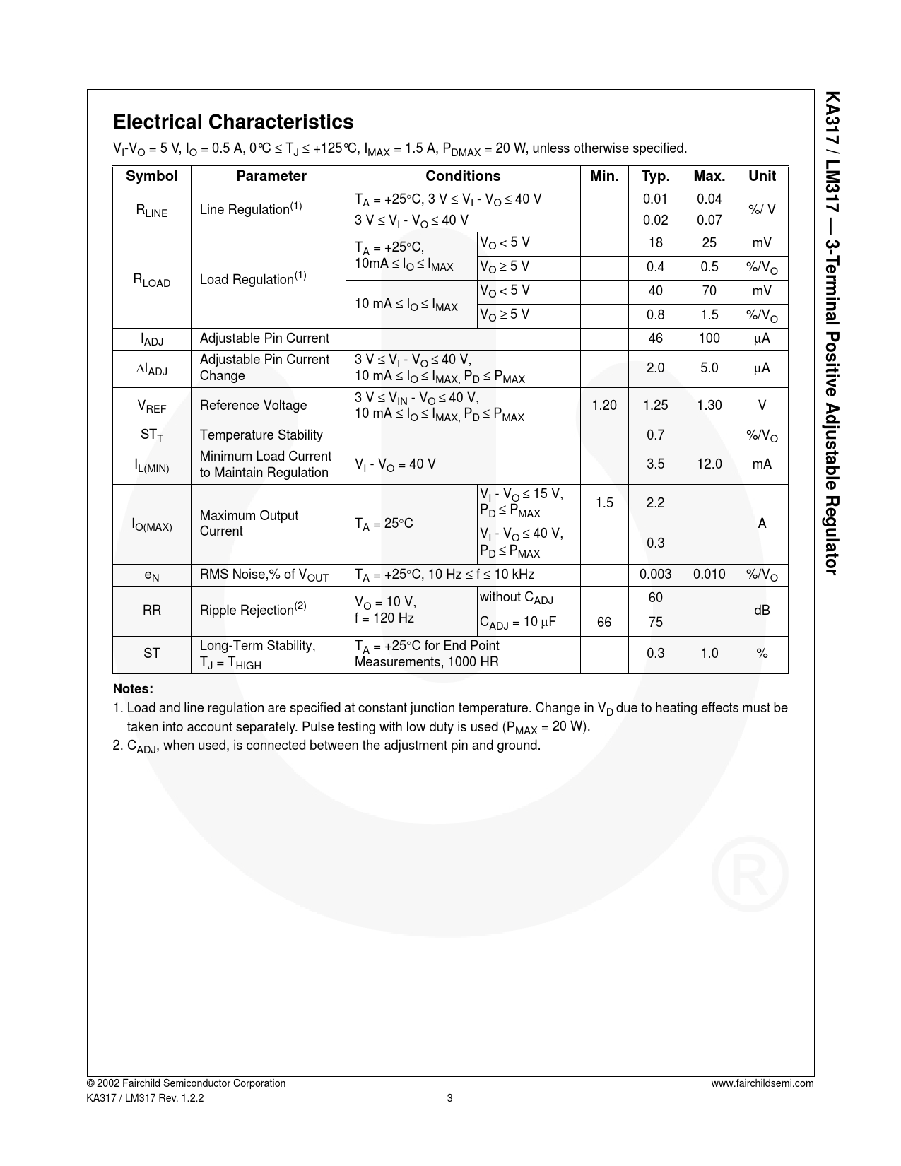 2. CADJ, when used, is connected between the adjustment pin and ground. © 2002 Fairchild Semiconductor Corporation