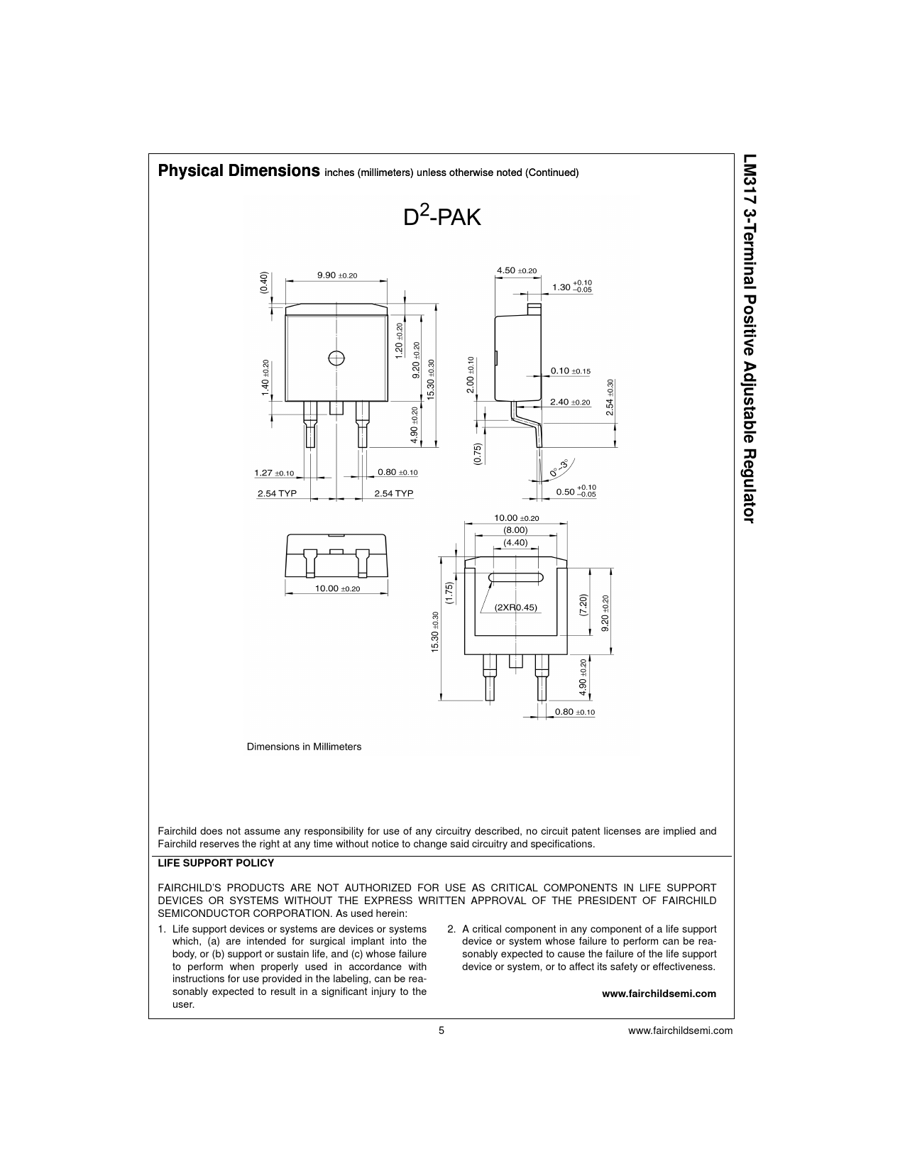 LM317 Physical Phys ical Di ensions nsions 3- T e rminal Posi tive Adjust able Regul ator LIFE SUPPORT POLICY www.fairchildsemi.com