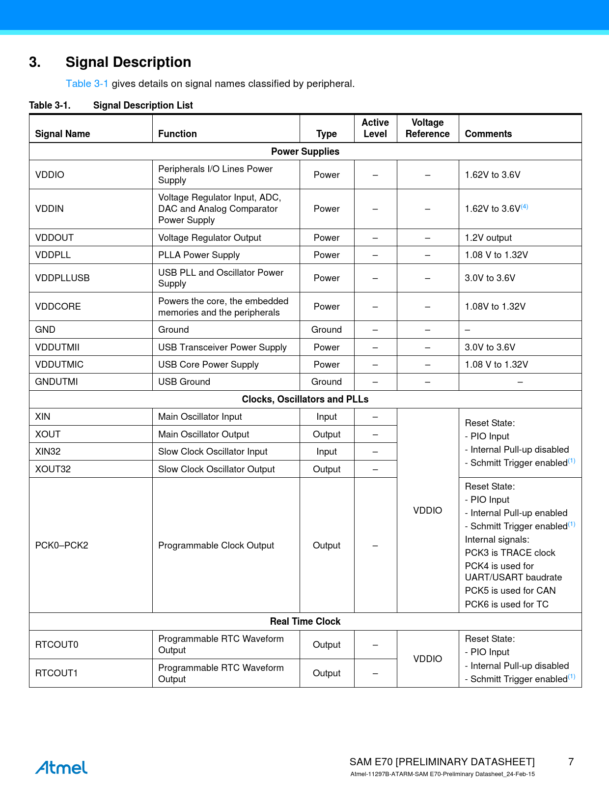 Table 3-1. Signal Description List Active Voltage Signal Name Function Type Level Reference Comments Power Supplies