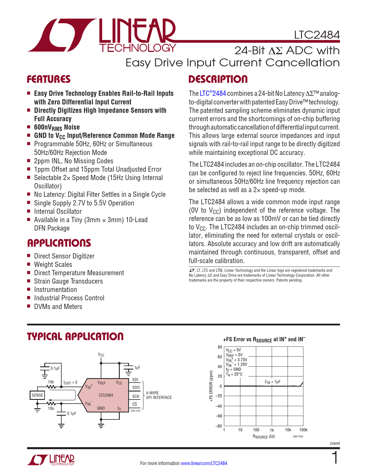 LTC2484 24-Bit ∆Σ ADC with Easy Drive Input Current Cancellation
