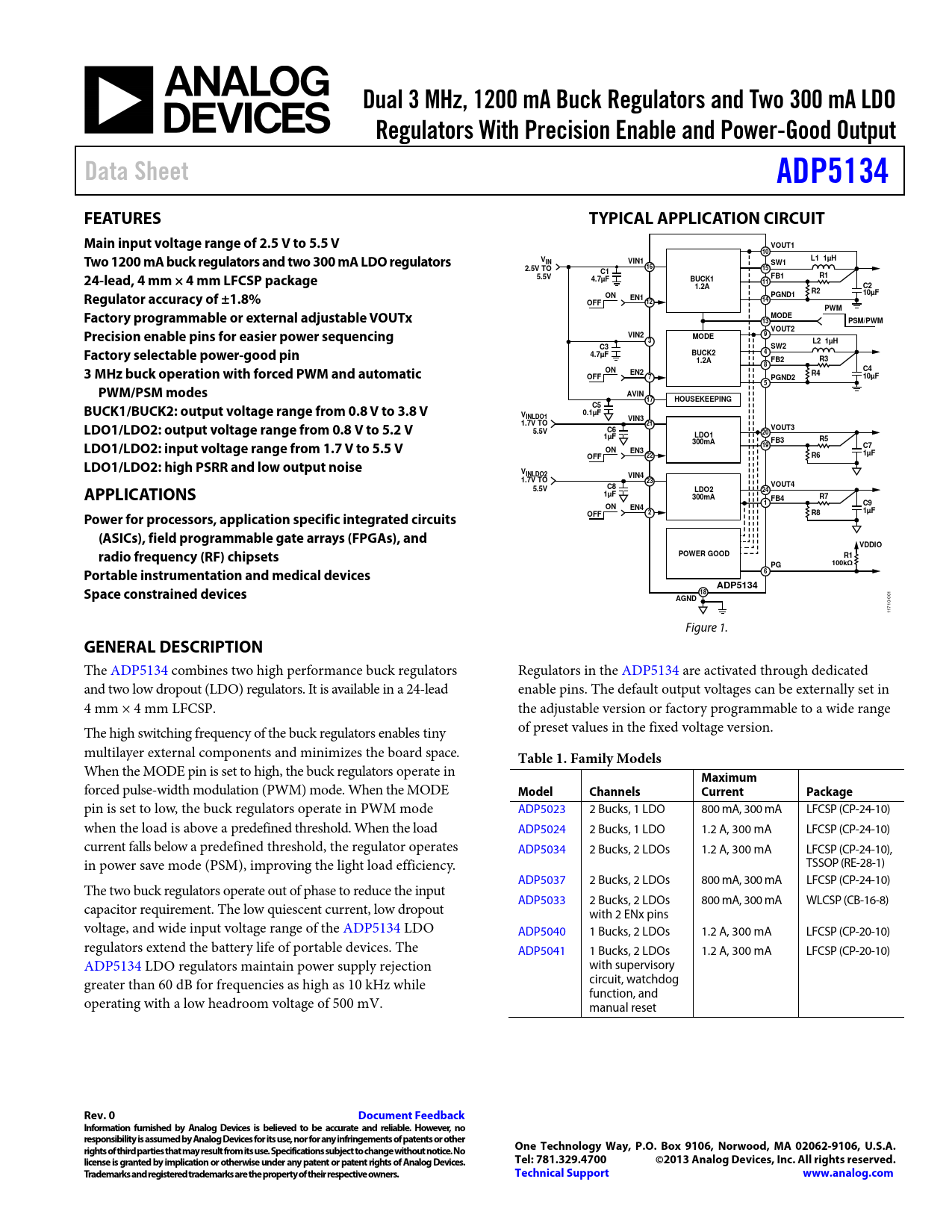 Dual 3 MHz, 1200 mA Buck Regulators and Two 300 mA LDO. Regulators With Precision Enable and Power-Good Output. Data Sheet