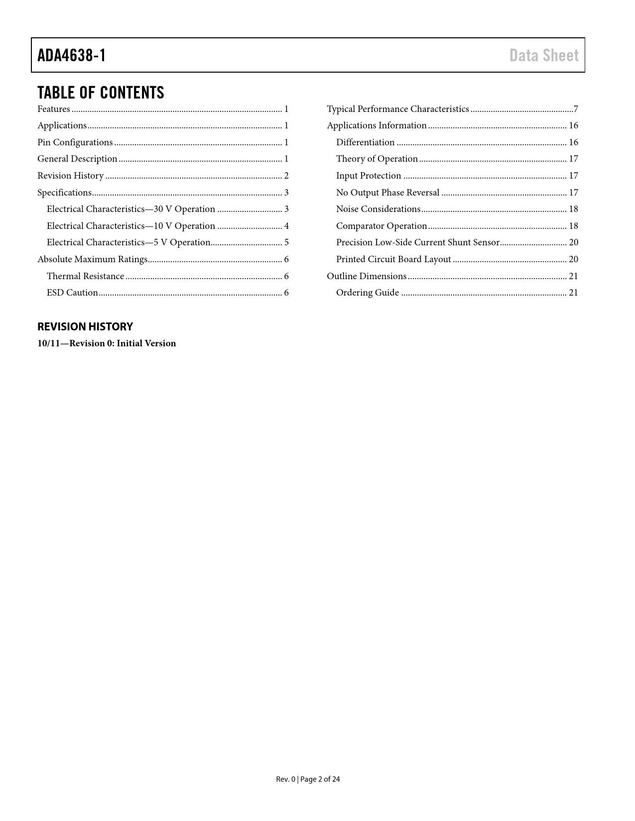 ADA4638-1 Data Sheet TABLE OF CONTENTS REVISION HISTORY 10/11—Revision 0: Initial Version