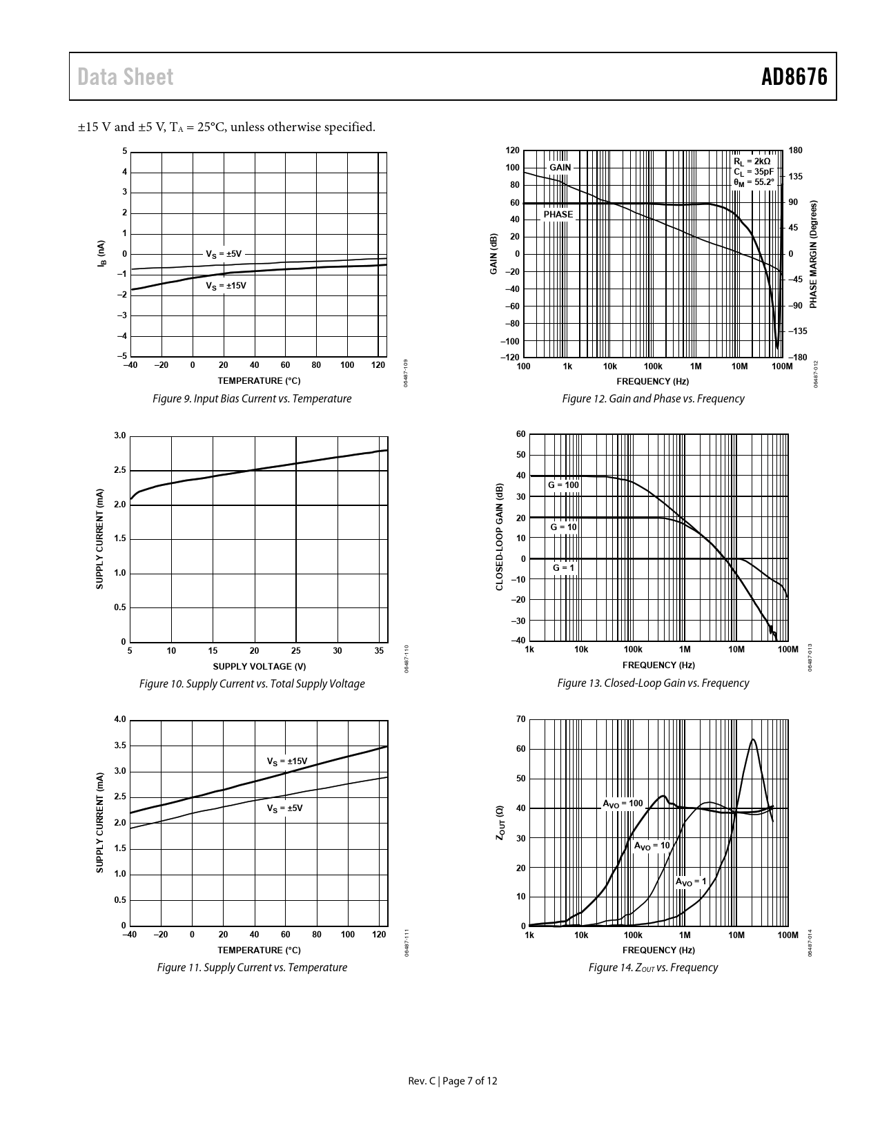 Seiten / Seite12 / 7 — Data Sheet. AD8676. 120. 180. RL = 2kΩ. 100. GAIN. CL = 35pF. 135. θM = …