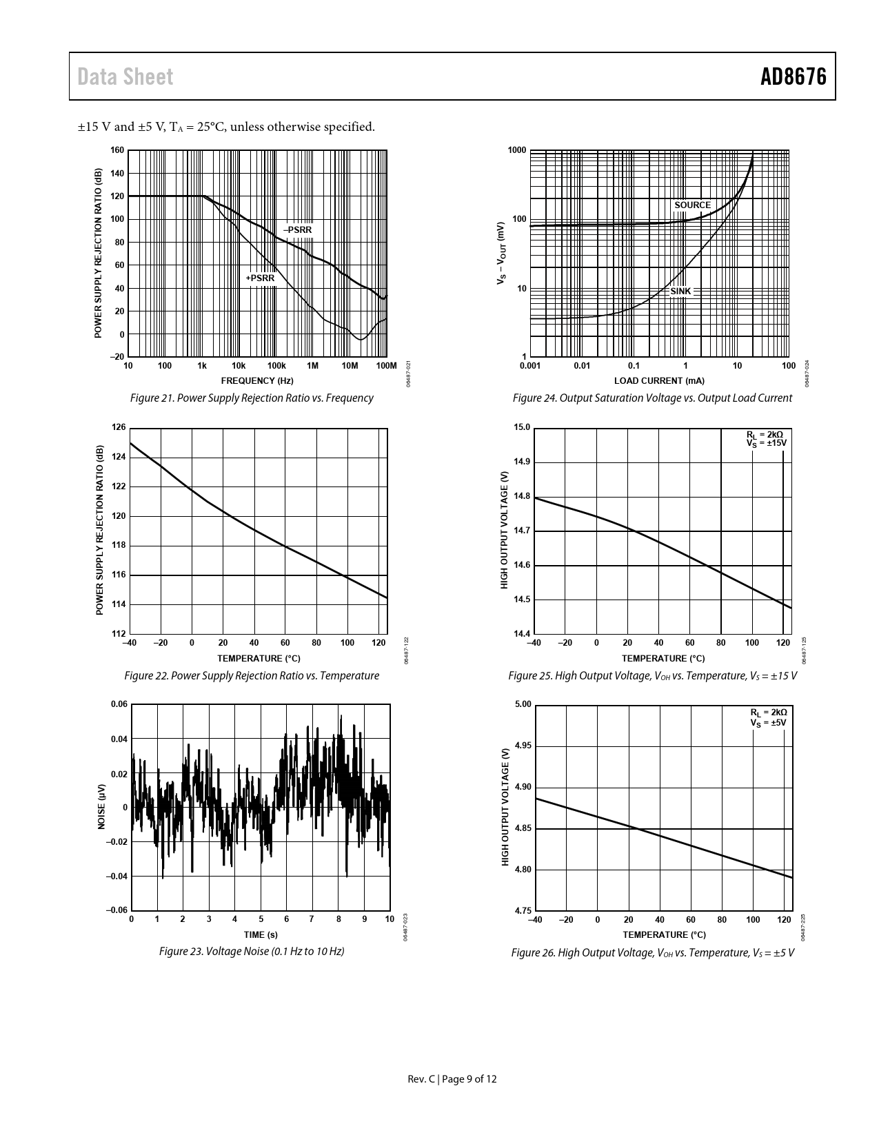 Data Sheet. AD8676. 160. 1000. ) B 140 (d IO 120. SOURCE. RAT N 100. 100. –PSRR. (m T. JE E. – V. +PSRR. SINK. S R. E W O P. –20. 10k. 100k. 10M. 100M. 0.001. 0.01