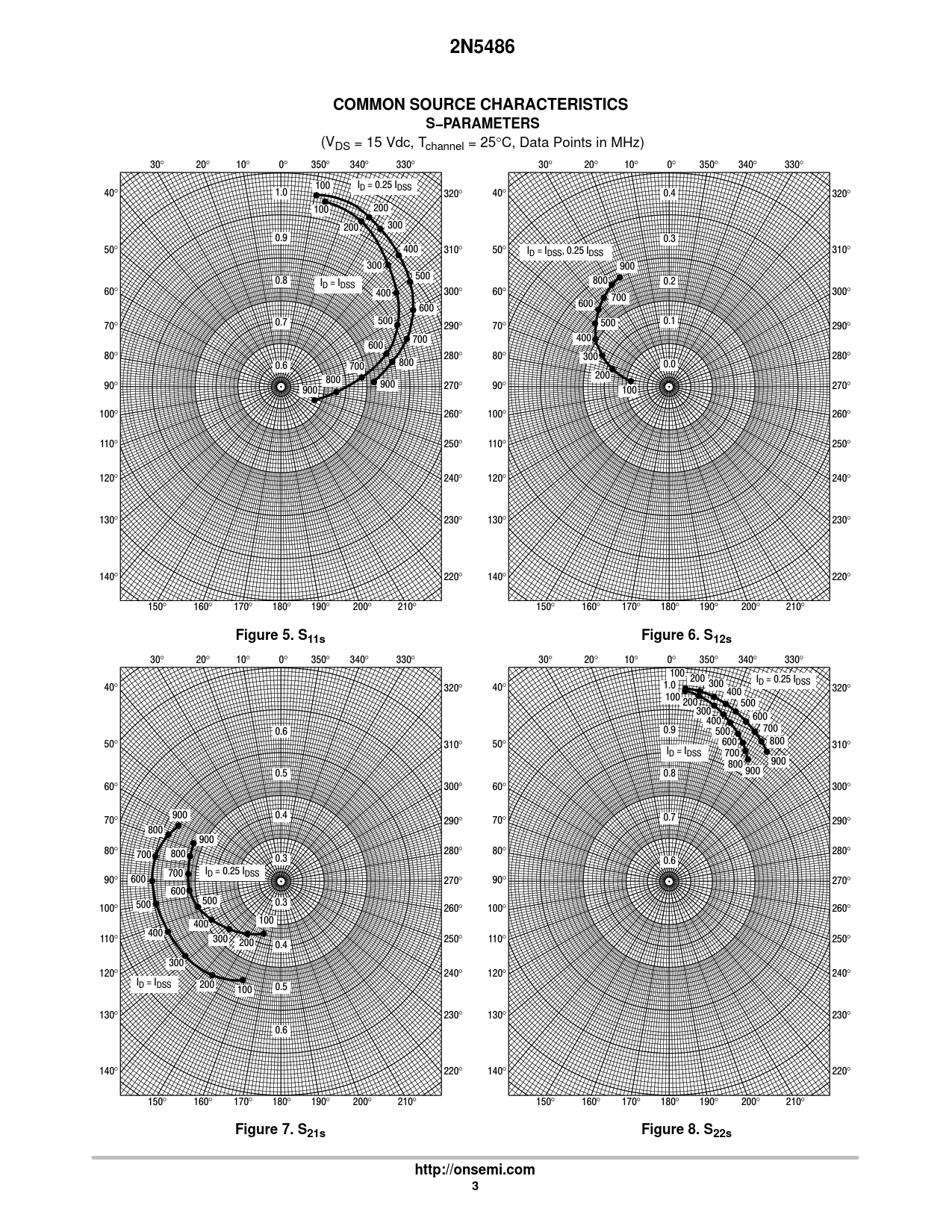 2N5486. COMMON SOURCE CHARACTERISTICS. S−PARAMETERS. Figure 5. S11s. Figure 6. S12s. Figure 7. S21s. Figure 8. S22s