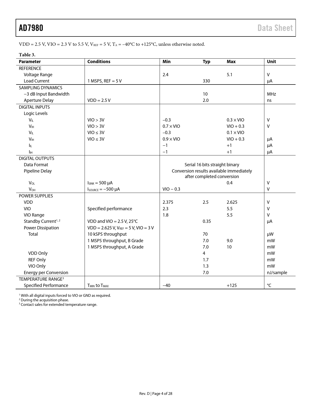 AD7980 Data Sheet Table 3 Parameter Conditions Min Typ Max Unit