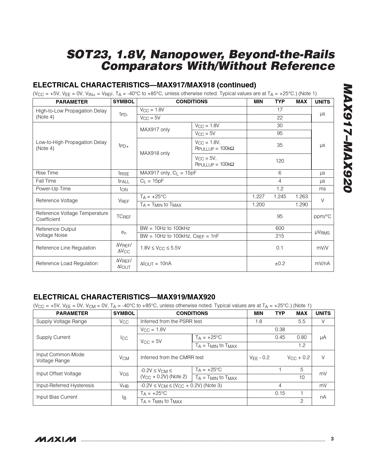 SOT23, 1.8V, Nanopower, Beyond-the-Rails Comparators With/Without Reference MAX917–MAX920 ELECTRICAL CHARACTERISTICS—MAX917/MAX918 (continued)
