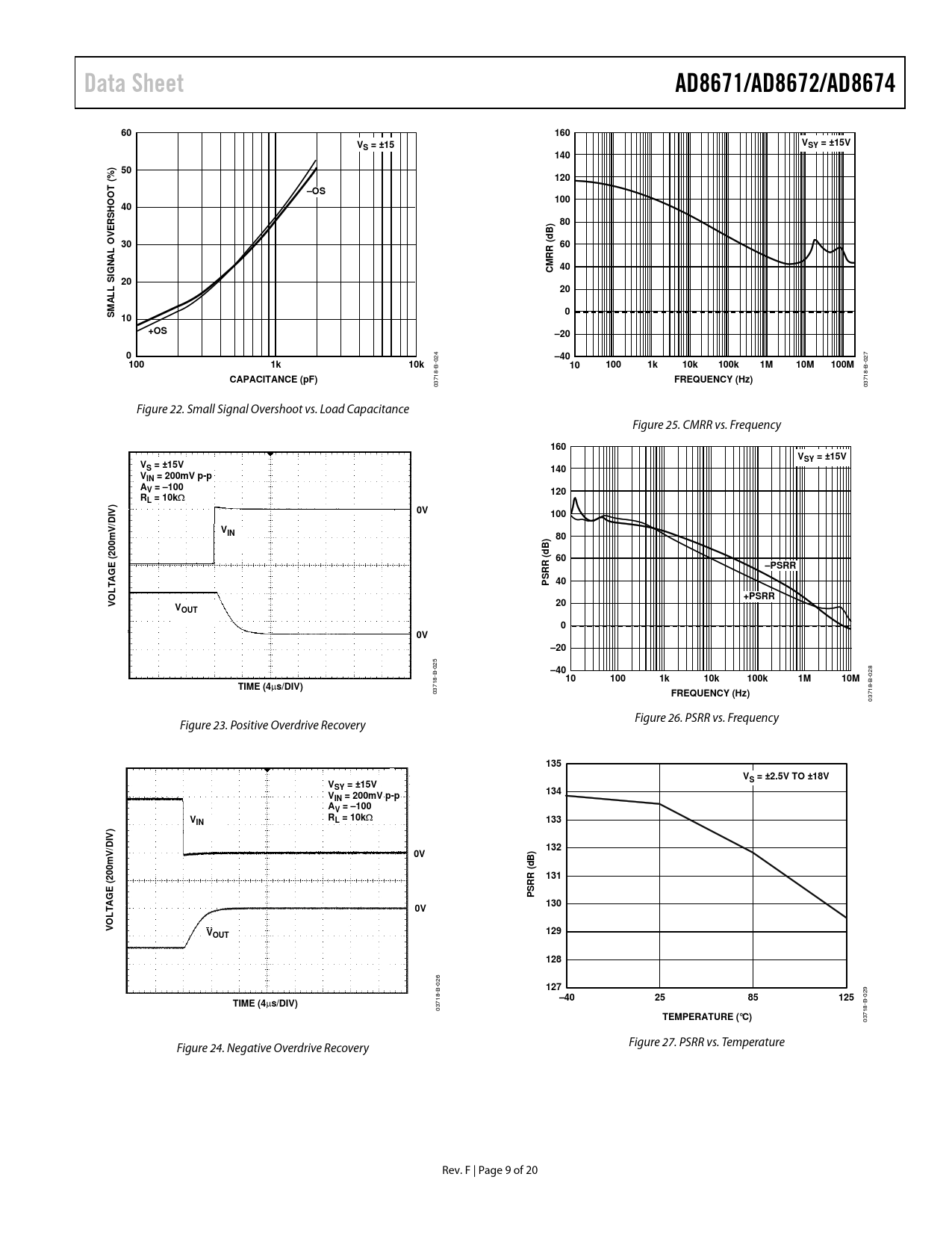 Data Sheet. AD8671/AD8672/AD8674. 160. S = ±15. SY = ±15V. 140. ) 50. % (. 120. T O. –OS. 100. VER. B) d. O 30. ( 60. L A. C 40. SI 20. +OS. –20. –40. 10k. 100k. 10M