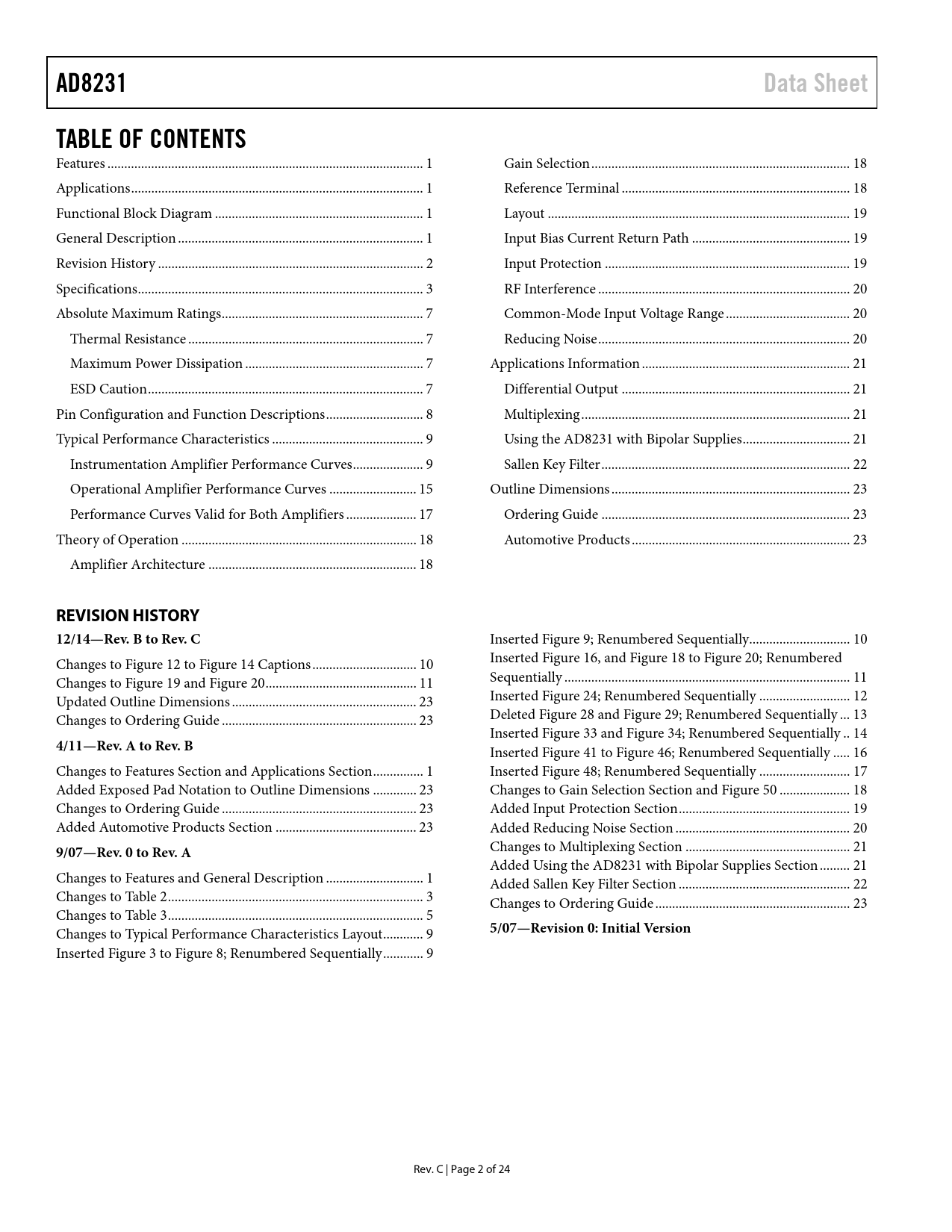 Seiten / Seite24 / 2 — AD8231. Data Sheet. TABLE OF CONTENTS. REVISION HISTORY. 12/14—Rev. B to …