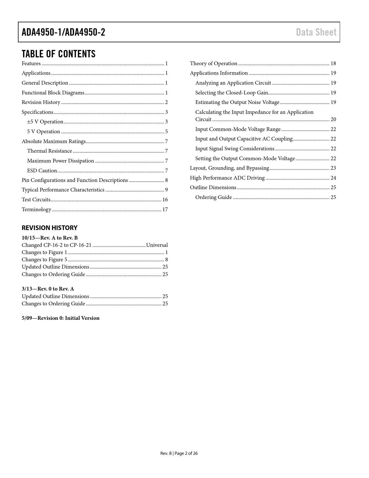 Seiten / Seite26 / 2 — ADA4950-1/ADA4950-2. Data Sheet. TABLE OF CONTENTS. REVISION HISTORY …