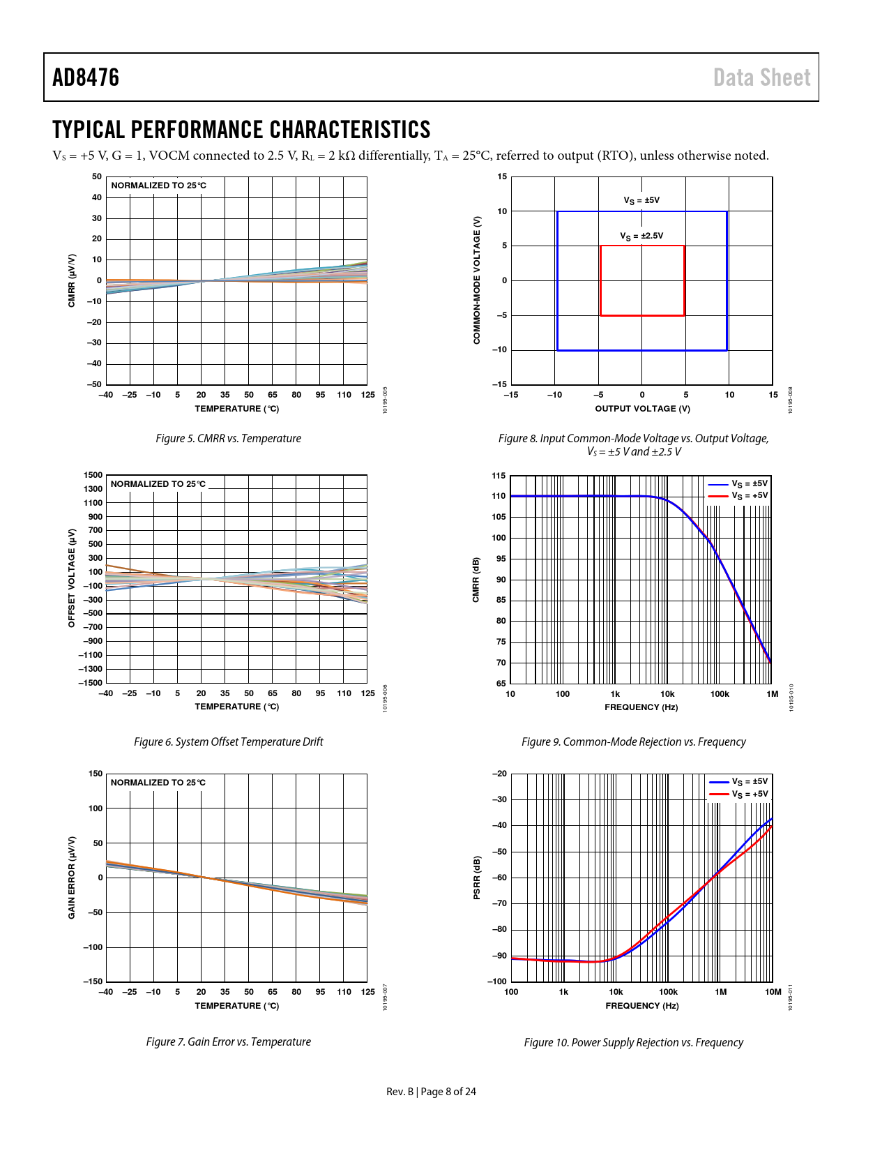 AD8476. Data Sheet. TYPICAL PERFORMANCE CHARACTERISTICS. NORMALIZED TO 25°C. VS = ±5V. E (V). VS = ±2.5V. V/ (µ. E VO. –10. -MO N. –20. MMO O