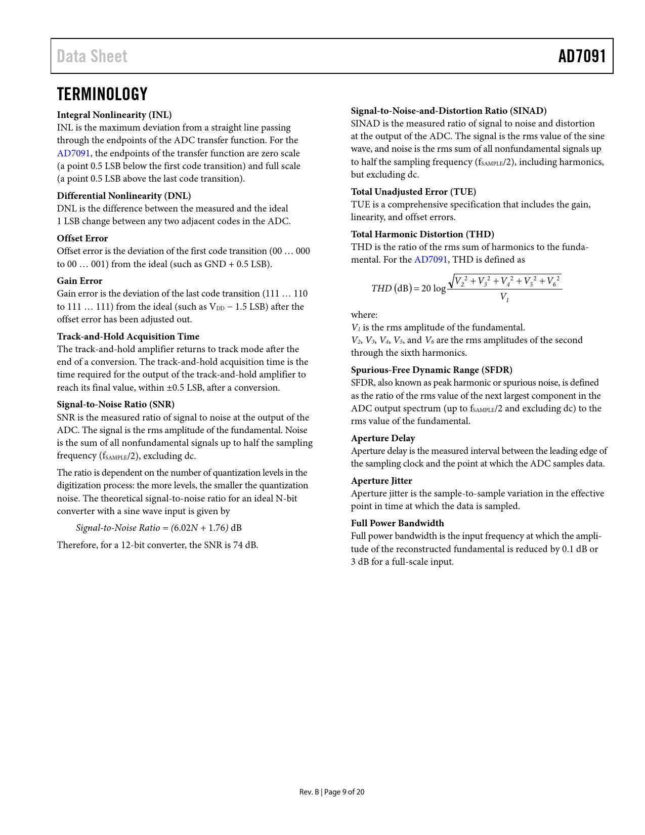 Seiten / Seite20 / 9 — Data Sheet. AD7091. TERMINOLOGY Integral Nonlinearity (INL). …