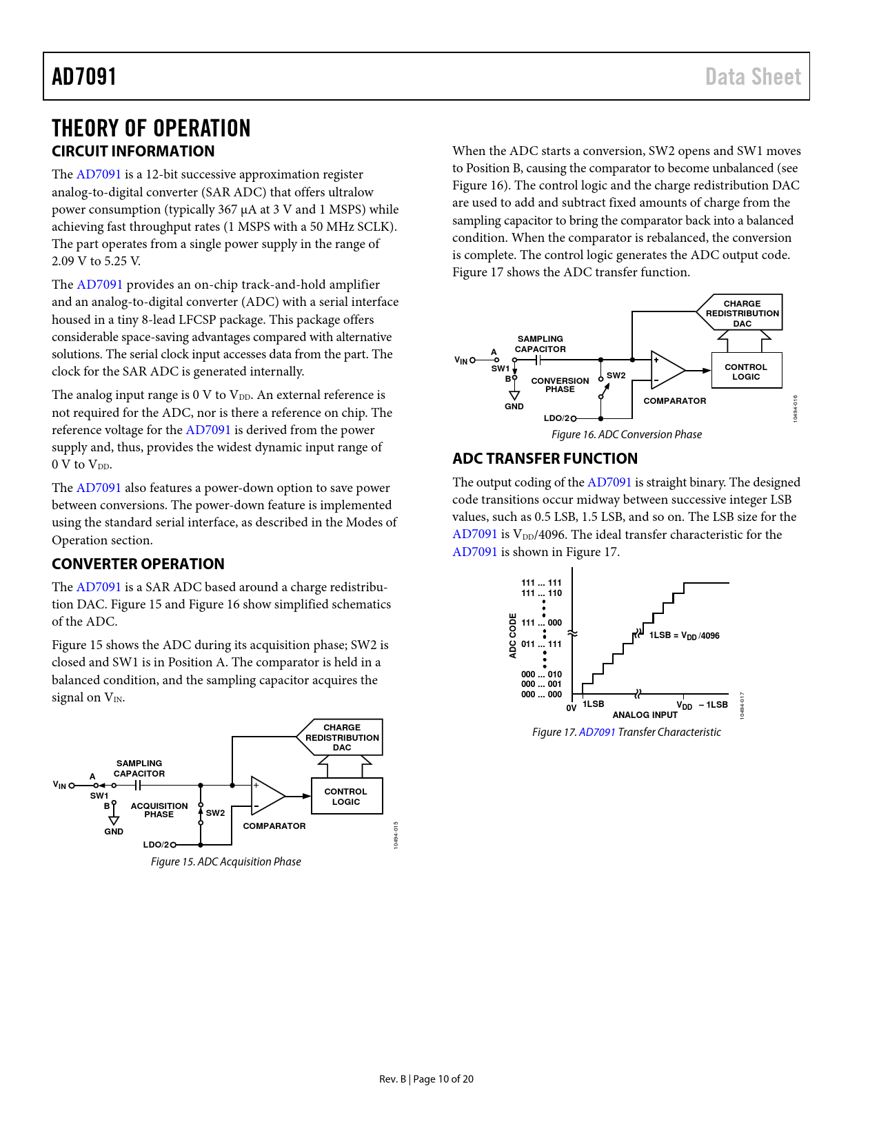 AD7091. Data Sheet. THEORY OF OPERATION CIRCUIT INFORMATION. CHARGE. REDISTRIBUTION. DAC. SAMPLING. CAPACITOR. VIN. SW1. CONTROL. SW2. LOGIC