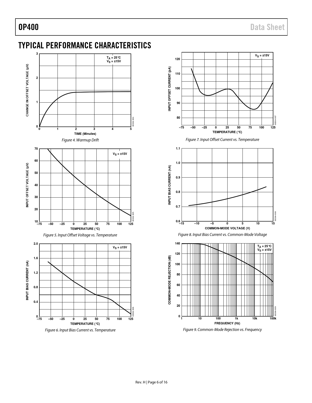 OP400. Data Sheet. TYPICAL PERFORMANCE CHARACTERISTICS. S = ±15V. A = 25°C. 120. VS = ±15V. (μV). A) p. 110. OLTA. ET V. CURRE. 100. T E S F. OFFS. N A