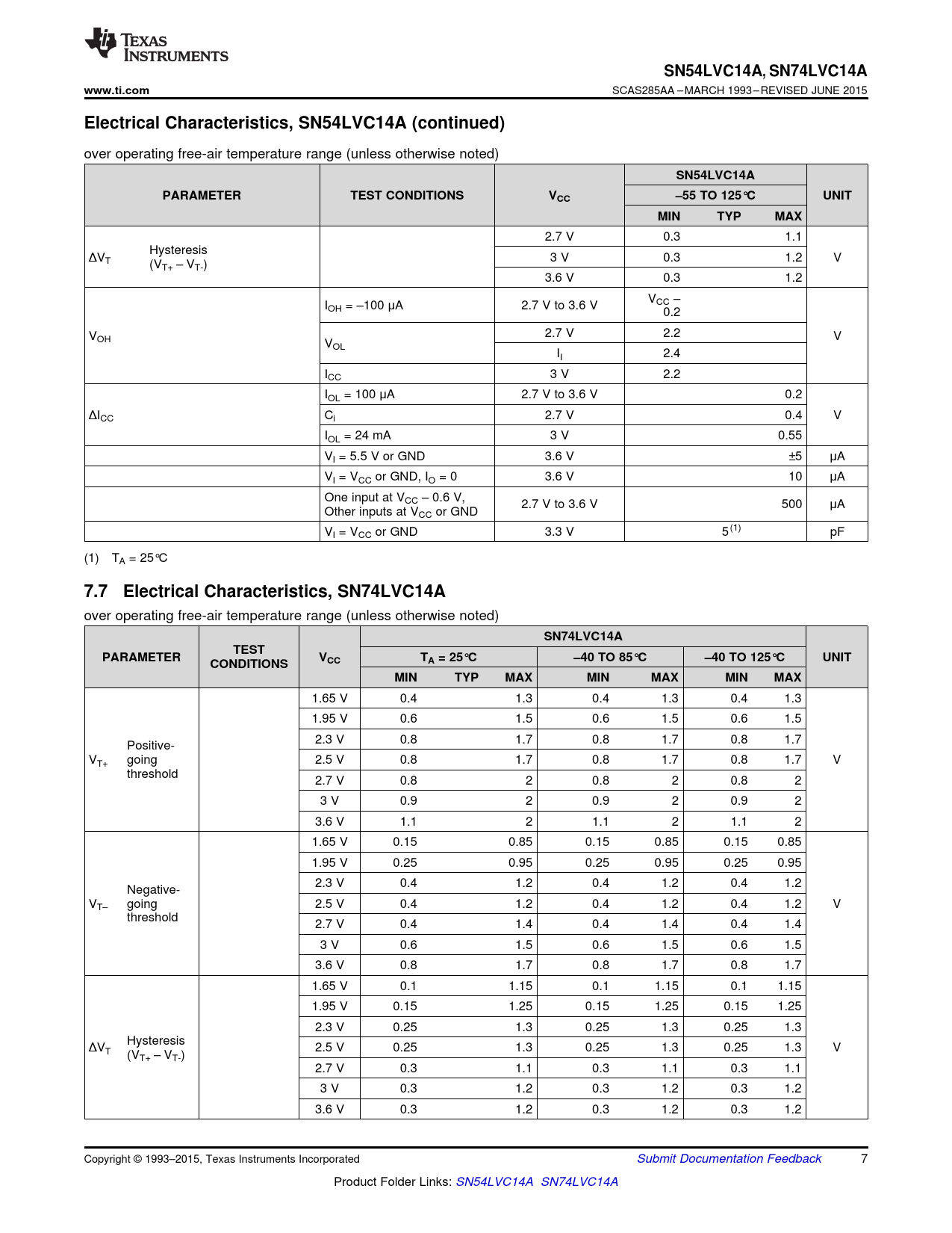 | Seiten / Seite | 37 / 7 — SN54LVC14A. , SN74LVC14A. www.ti.com. Electrical Characteristics, … |