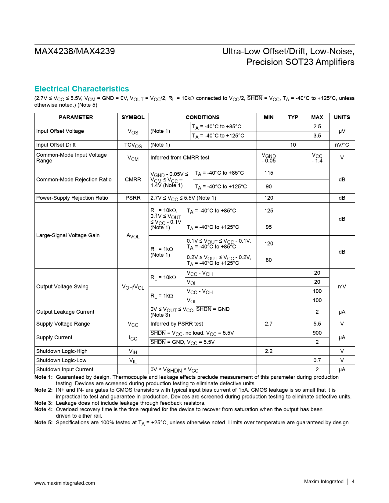 Specifications are 100% tested at TA = +25°C, unless otherwise noted. Limits over temperature are guaranteed by design. www.maximintegrated.com Maxim Integrated │ 4