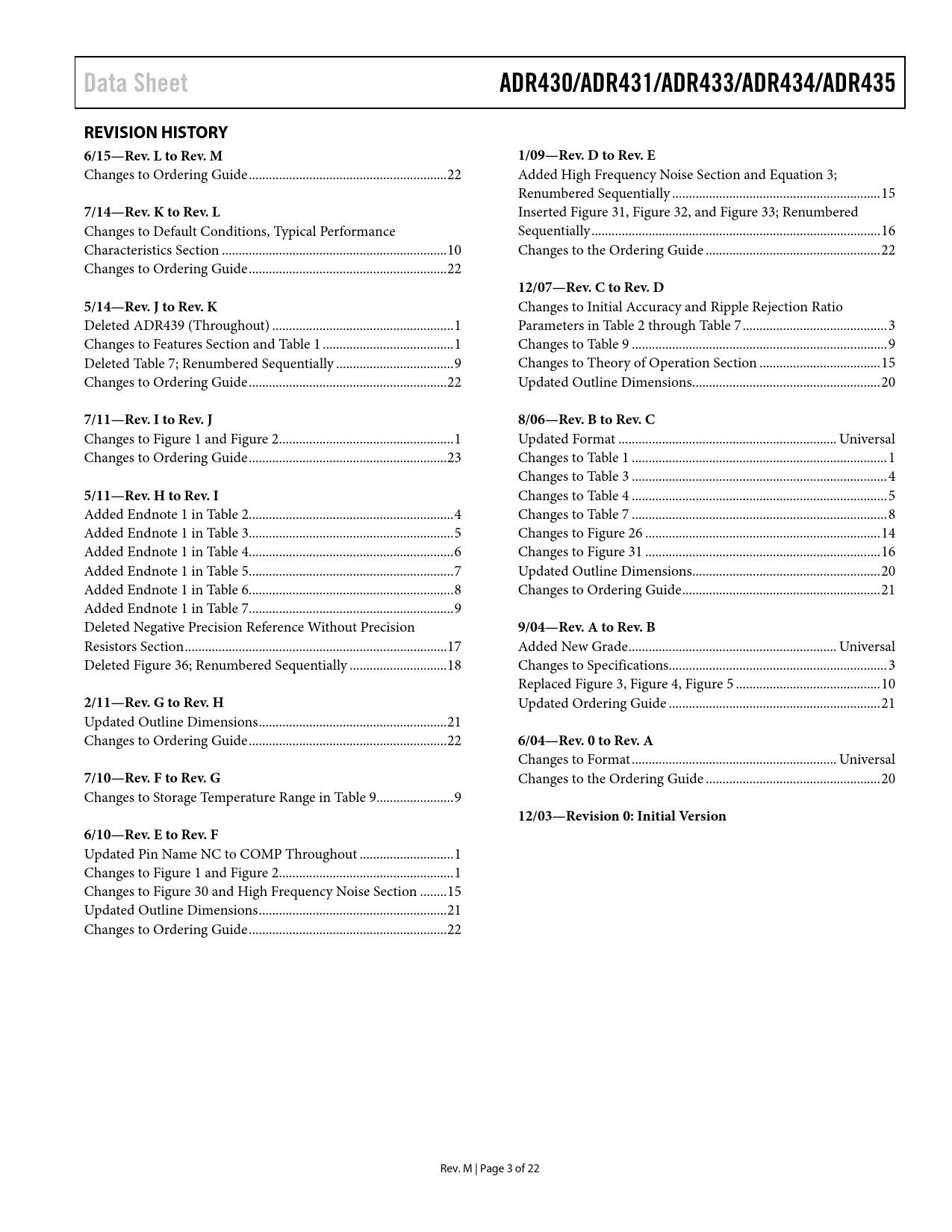 Data Sheet. ADR430/ADR431/ADR433/ADR434/ADR435. REVISION HISTORY 6/15—Rev. L to Rev. M. 1/09—Rev. D to Rev. E